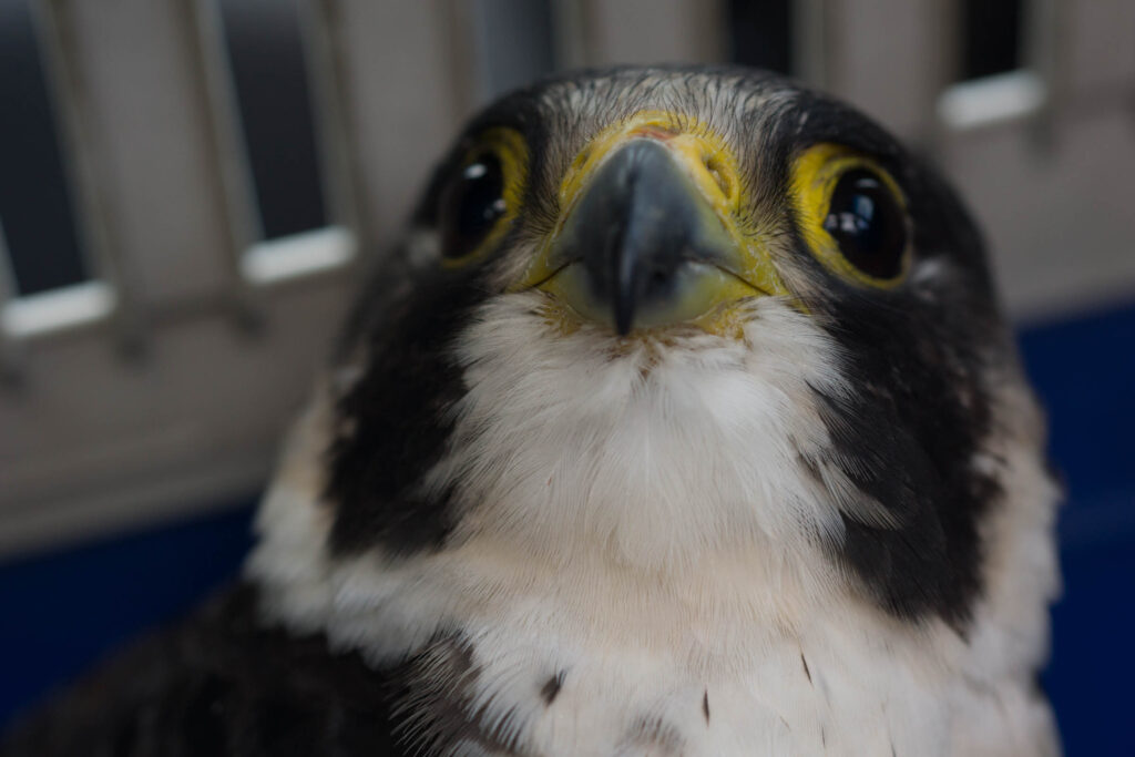 Dieser Baumfalke ist verletzt und verängstigt auf dem Weg zum Arzt, gerettet von der freiwilligen Vogelpflegerin Verena Stauffer.
